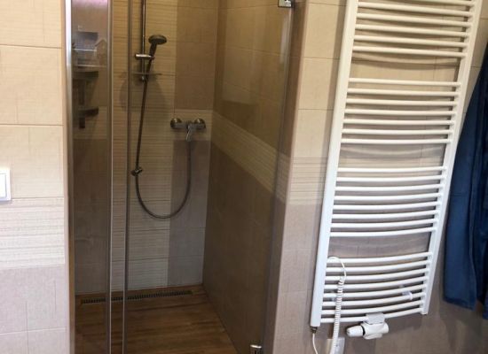 Sprchový kout do niky byl vytořen přesně na míru zákazníkovi, jehož požadavek byl oboustranné otevírání dveří, tudíž sprchové dveře museli být doplněny o malou cca 150 mm fixní část.