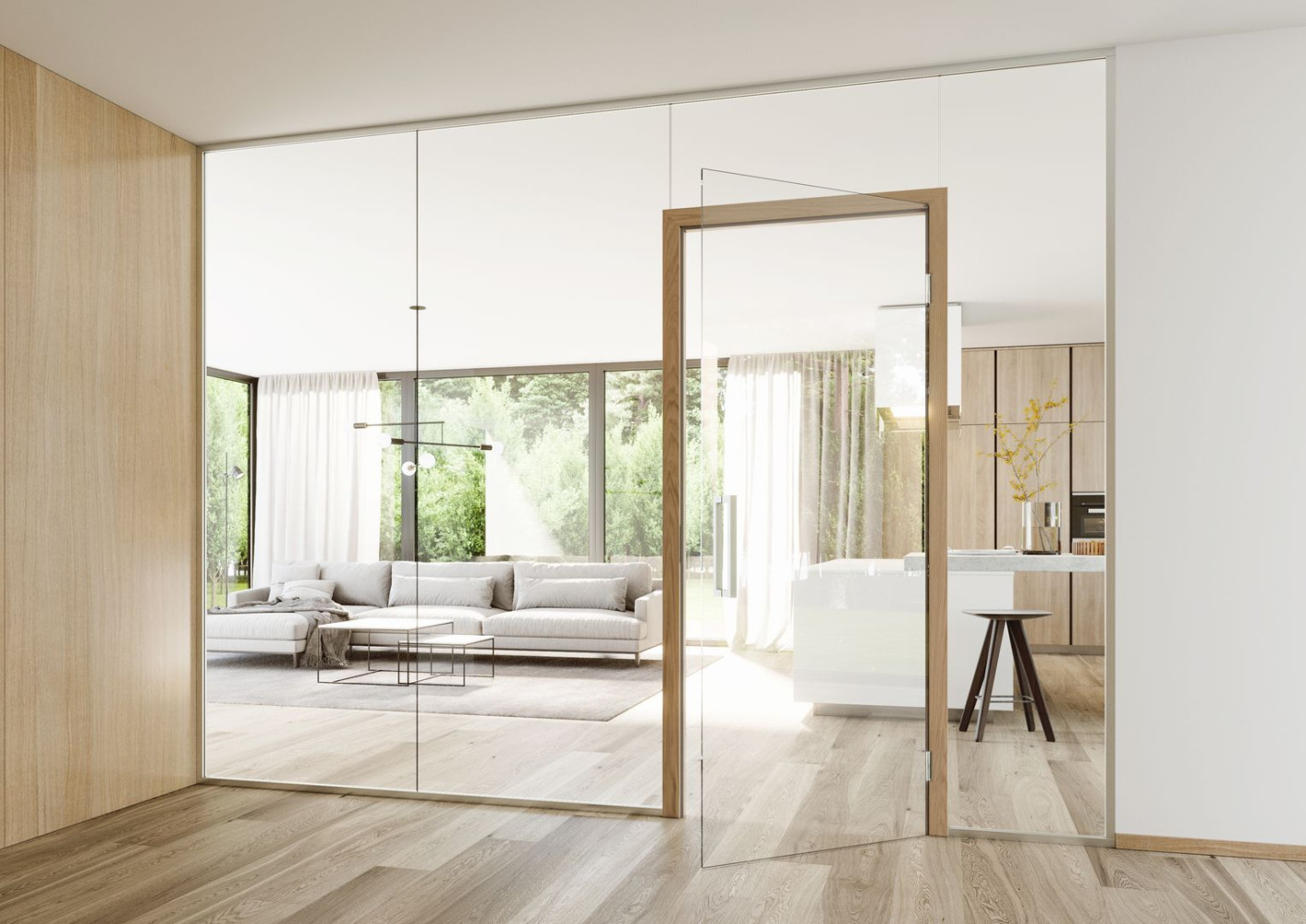Pro rodiny s dětmi tak nejsou celoskleněné dveře nebo skleněná příčka rizikem – naopak přinášejí lepší přehled o dění v bytě a více denního světla.